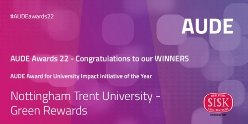 Simon Smith, Interim Director of Estates at NTU, pointed out that by March 2022 the Green Rewards programme at NTU was responsible for carbon savings of 432,860 kg through 217,000 positive actions that staff and students have made. “We’d really like to thank NTU’s staff and students for getting behind the programme with such enthusiasm – that in turn has helped us influence across the local authorities across Nottinghamshire. The entire University, estates and sustainability teams are right behind this project and have given it fantastic support, and the platform provider, Jump, and our colleagues in the local authorities and at the University of Nottingham deserve a huge share of the credit for this AUDE Award too.”