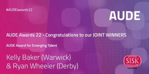 Together with Kelly Baker, our other joint award winner of the AUDE Award for Emerging Talent is Ryan Wheeler (Assistant Project Manager at the University of Derby) who at just 25 is rapidly climbing the ranks after making a huge impact in a placement year during his studies at the university – an opportunity that led to a paid role and a snowballing move into project management.